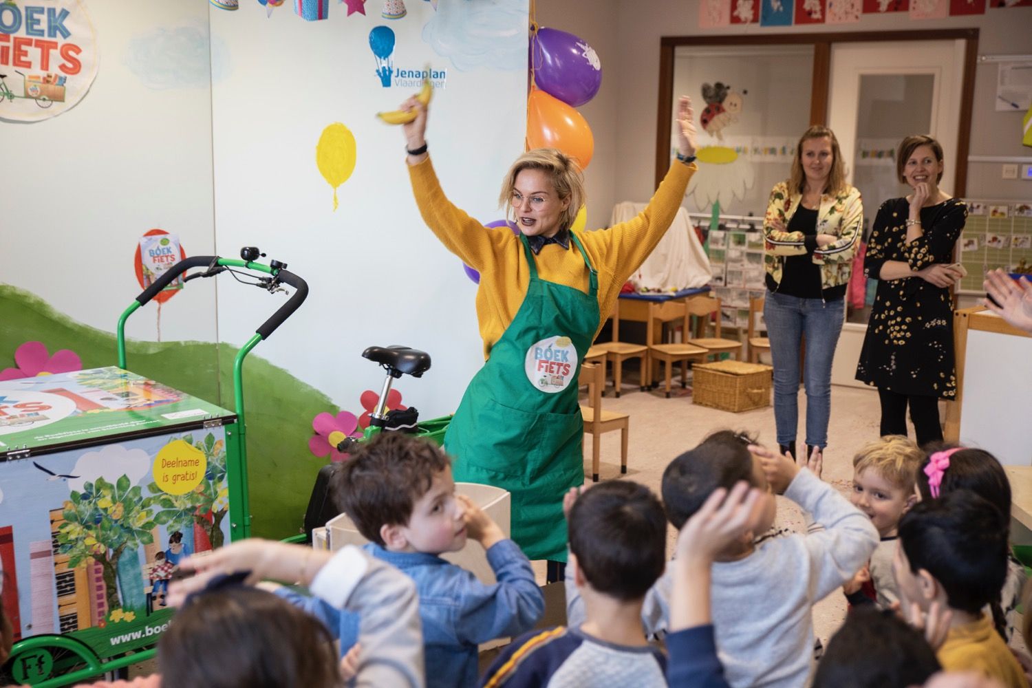 De Boekfiets is een herkenbare bakfiets die is uitgerust met een complete inventaris van boeken, knuffels, spelletjes, tekenspullen en een geluidsinstallatie. Onze voorleesvrijwilligers ('Boekfietsers') rijden met de Boekfiets wekelijks uit naar scholen, peuterspeelzalen, kinderopvangcentra, wijkcentra, bibliotheken, speeltuinen en parken waar zij binnen en buiten voorlezen bij De Boekfiets. Naast vaste locaties waar De Boekfiets op reguliere basis langskomt, maakt hij op verzoek ook ritjes maken naar niet reguliere locaties of bijvoorbeeld evenementen. De Boekfietsers lezen voor met behulp van een vertelkastje en doen taalspelletje met kinderen én ouders. Zo brengen we het (voor)leesplezier letterlijk naar kinderen en ouders toe.