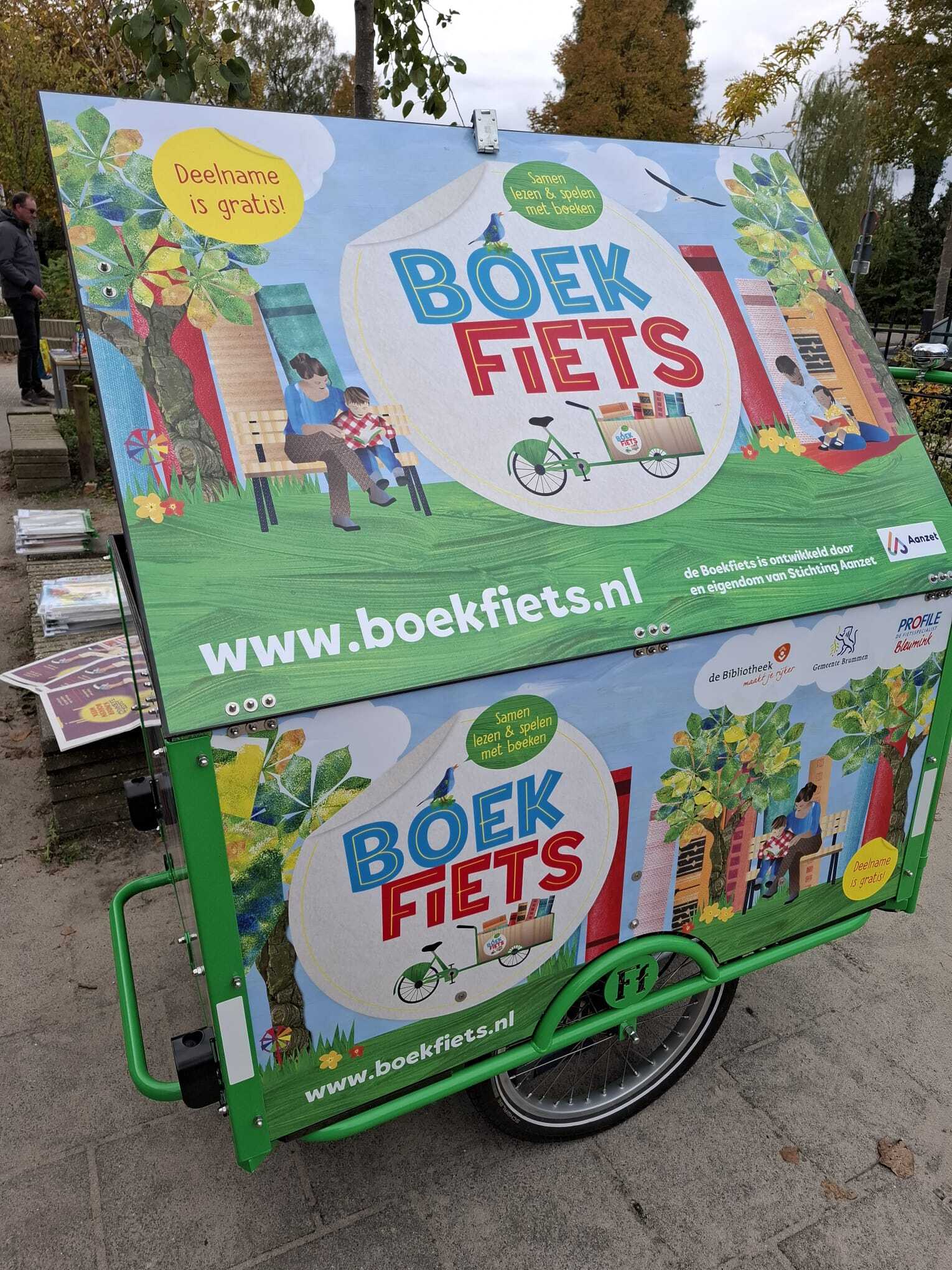 De Boekfiets is speciaal ontwikkeld als een herkenbare bakfiets gevuld met boeken, voorleesmaterialen en een geluidsinstallatie.